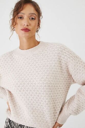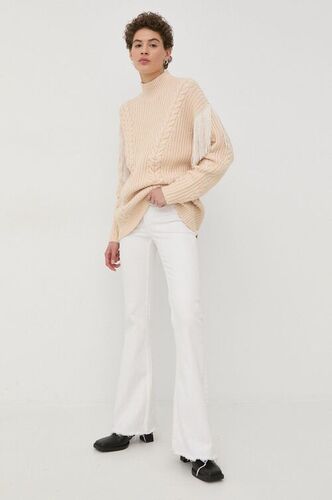 Medicine sweter z domieszką wełny damski kolor beżowy ciepły