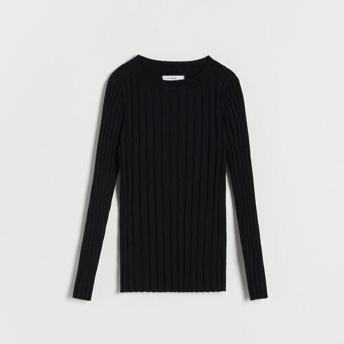 Reserved - Dzianinowy sweter w prążki - swetry dziewczęce Czarny