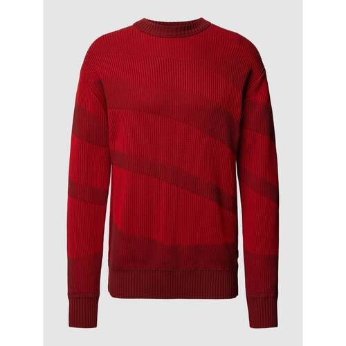 Sweter z dzianiny z prążkowanym, okrągłym dekoltem