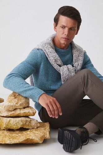 Medicine sweter wełniany męski kolor turkusowy