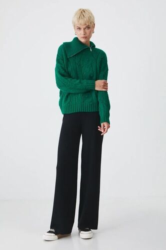 Medicine sweter damski kolor zielony ciepły z golfem