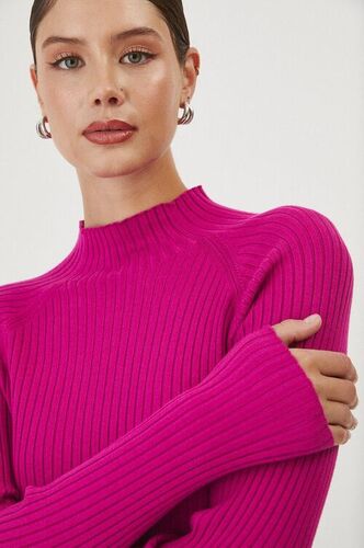 Medicine sweter z domieszką wełny damski kolor różowy ciepły z golfem