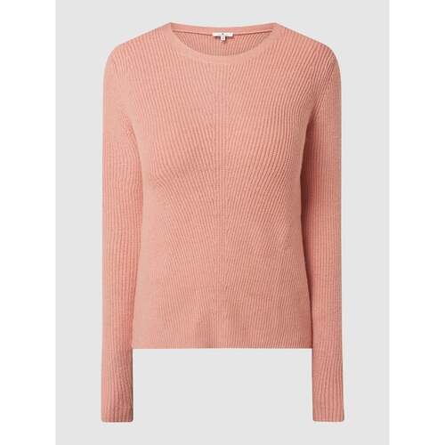 Sweter z dzianiny z prążkowanym, okrągłym dekoltem