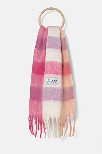 Guess szalik szaliczki damskie z domieszką wełny kolor różowy wzorzysty AW5221 POL03