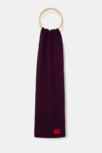 HUGO szalik wełniany kolor fioletowy gładki