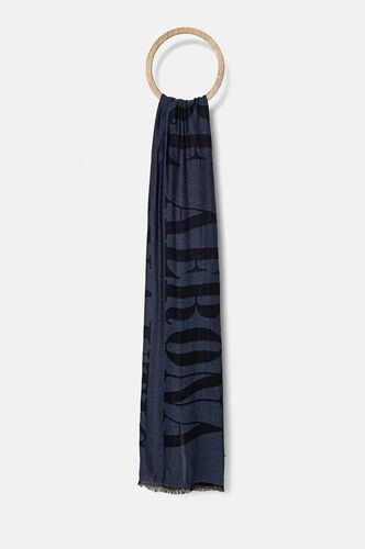 BOSS szalik wełniany kolor niebieski gładki