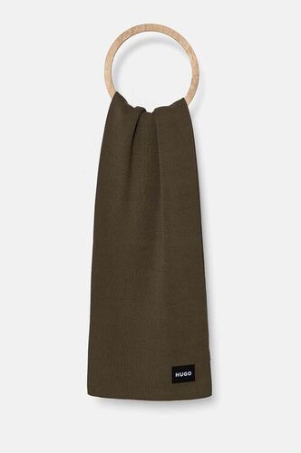 HUGO szalik wełniany kolor zielony gładki 50517623