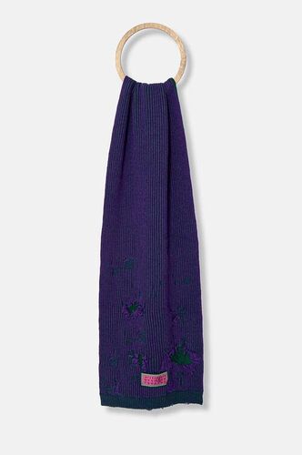 United Colors of Benetton szalik z domieszką wełny kolor fioletowy szaliki fioletowe wzorzysty 6RIPDU01G