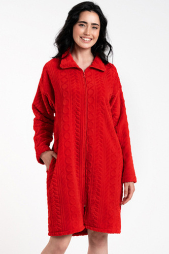 Italian Fashion ciepły szlafrok damski z kapturem Rena dł.r. Nocna szlafrok, czerwony