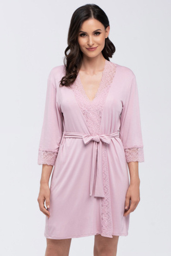 Italian Fashion Karina dł.r. Nocna szlafrok, szlafrok biały damski pudrowy róż