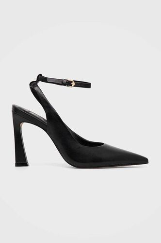 Calvin Klein szpilki skórzane HEEL SLINGBACK PUMP 70 SAFF LTH kolor szpilki czarne klasyczne czarny HW0HW02068