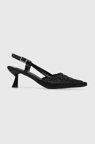 Jonak czółenka skórzane DOUBLE kolor czarny na słupku z buty czarne szpilki odkrytą piętą 3400187