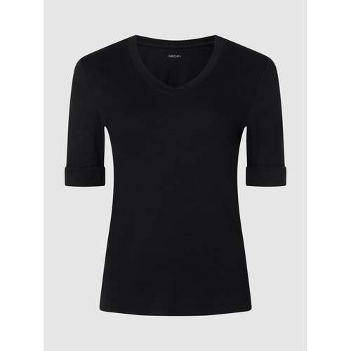 T-shirt z mieszanki wiskozy i elastanu z drobnym prążkowaniem damski