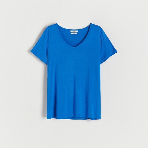 Reserved - T-shirt oversize z efektem sprania - Niebieski