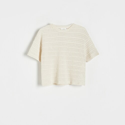 Reserved - T-shirt ze strukturalnej dzianiny - Kremowy