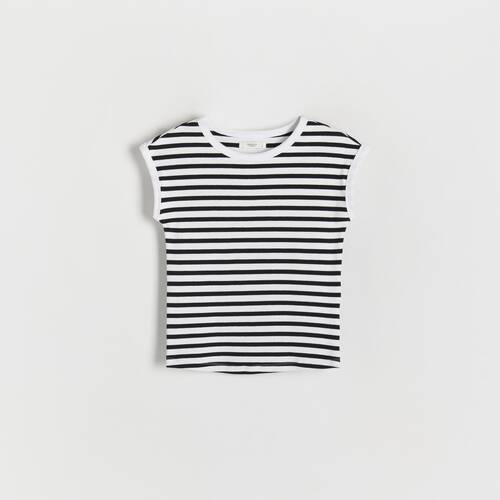 Reserved - T-shirt z ozdobnym dekoltem - Kremowy