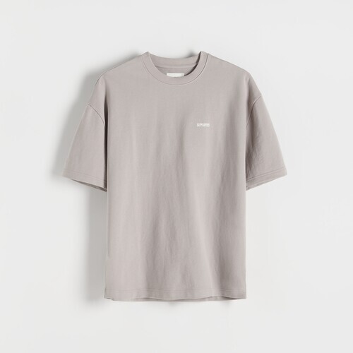 Reserved - T-shirt oversize z nadrukiem - Beżowy