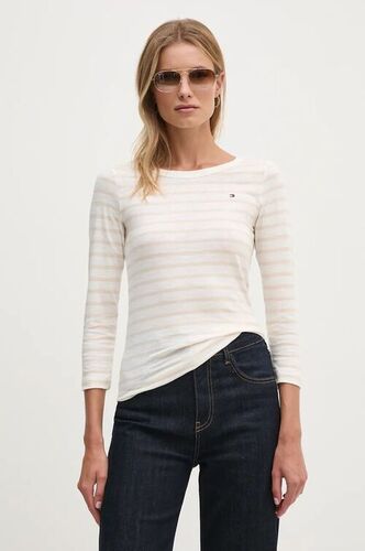 Tommy Hilfiger longsleeve tommy bluzka damska bawełniany kolor beżowy WW0WW45437