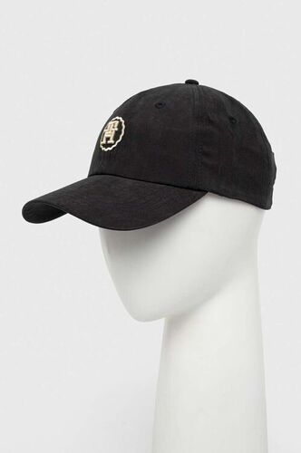 Tommy Hilfiger czapka z daszkiem bawełniana kolor czarny czapeczka z daszkiem damska tommy hilfiger z aplikacją AW0AW16622
