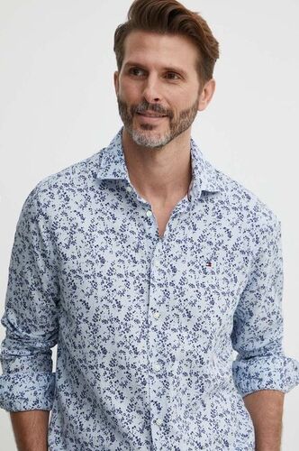 Tommy Hilfiger koszula z domieszką lnu kolor niebieski slim z kołnierzykiem tommy hilfiger koszule klasycznym MW0MW34631