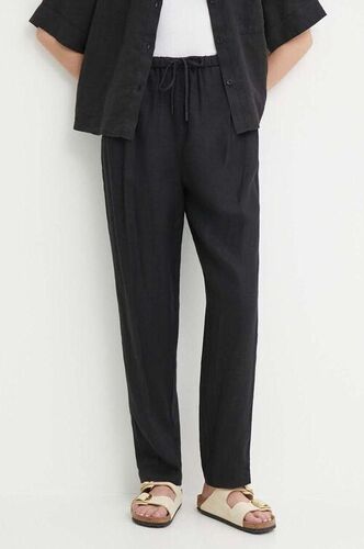 Tommy Hilfiger spodnie z domieszką lnu kolor czarny proste high waist