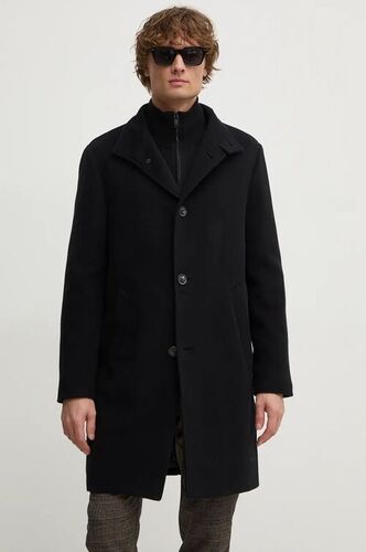 Tommy Hilfiger płaszcz wełniany kolor czarny przejściowy MW0MW36611