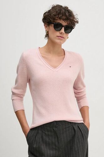 Tommy Hilfiger sweter wełniany damski kolor różowy lekki WW0WW43505