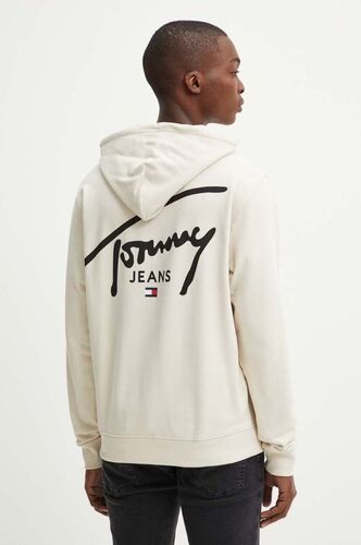 Tommy Jeans bluza bawełniana męska kolor beżowy z kapturem z nadrukiem DM0DM19229