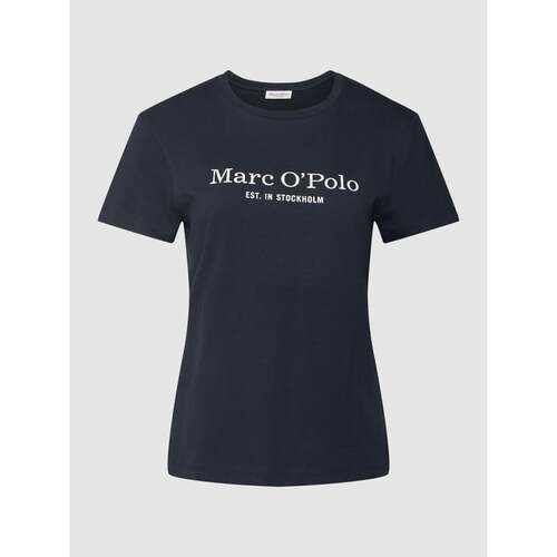 T-shirt krótki z okrągłym, prążkowanym dekoltem