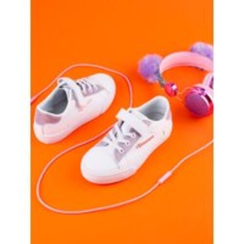 Białe trampki trampki dziecięce na rzepy dziecięce z różowym brokatem