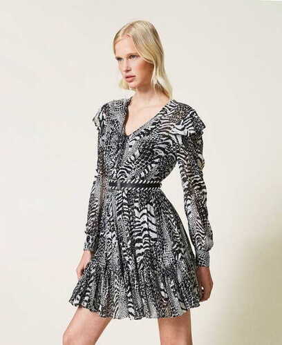 Sukienka mini z krepony w sukienka twinset zwierzęcy print Twinset
