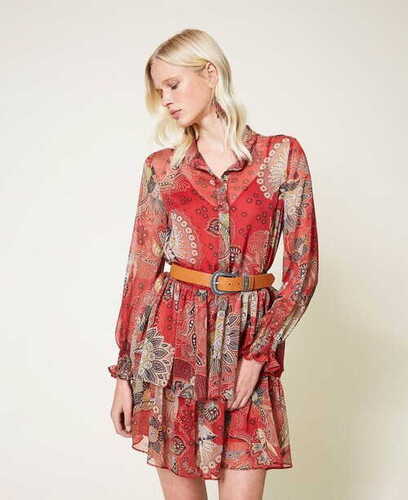 KORALOWA TIULOWA SUKIENKA MIDI Z twinset sukienka FALBANAMI TWINSET