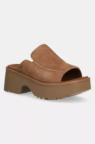 UGG klapki zamszowe New Heights Slide damskie kolor brązowy na platformie 1167476-CHE