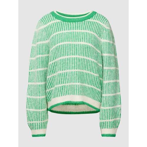 Sweter z dzianiny z prążkowanym, okrągłym dekoltem model ‘SAYLA’