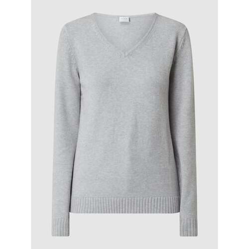 Sweter z dzianiny z prążkowanym, sukienki vila sklep internetowy okrągłym dekoltem model ‘FELO’