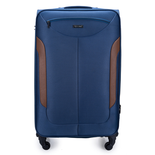 Duża walizka miękka L walizki podróżne damskie Solier STL1651 granatowo-brązowa
