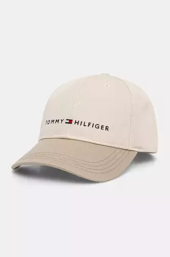 Tommy Hilfiger czapka z daszkiem bawełniana dziecięca kolor beżowy z aplikacją AU0AU01963