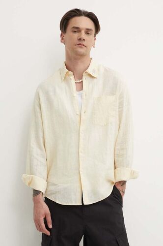 Drykorn koszula lniana DANU kolor beżowy relaxed z kołnierzykiem klasycznym 126086 87505